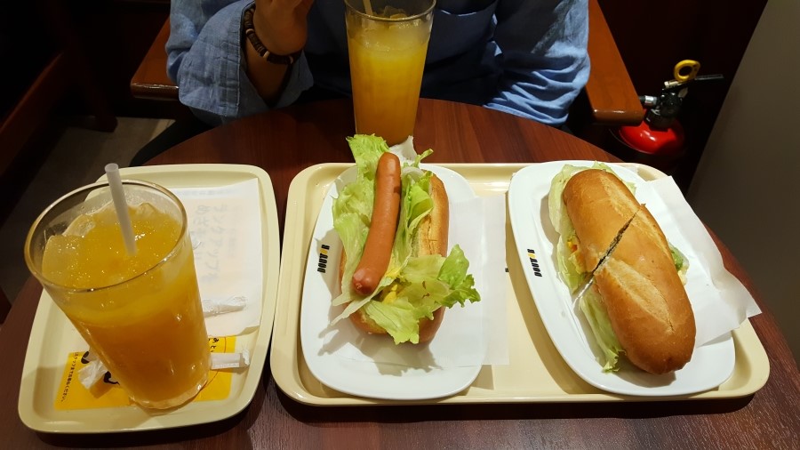 간단하게 오렌지주스와 핫도그를 주문하여